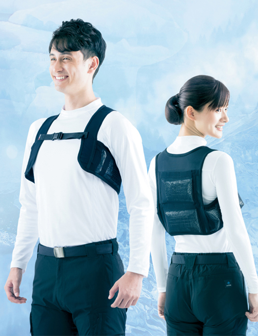 猛暑に負けない熱中症対策用品。アイスベスト、経口補水液、塩あめ、熱中応急処置セット、熱中アラーム、直射日光下でヘルメット内の温度上昇を