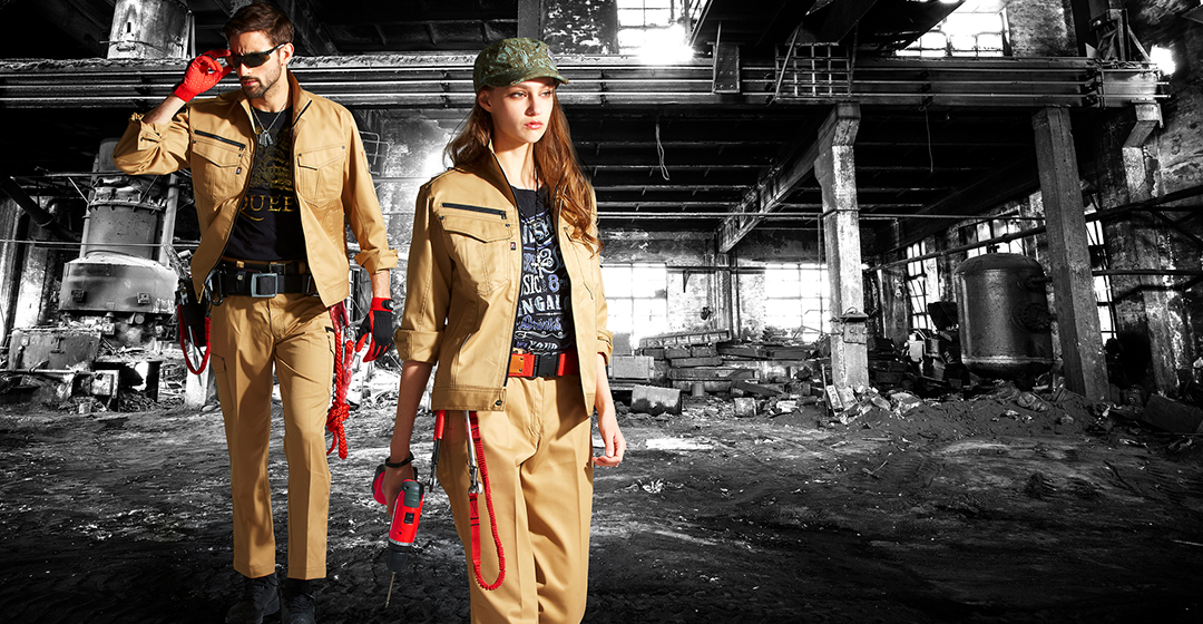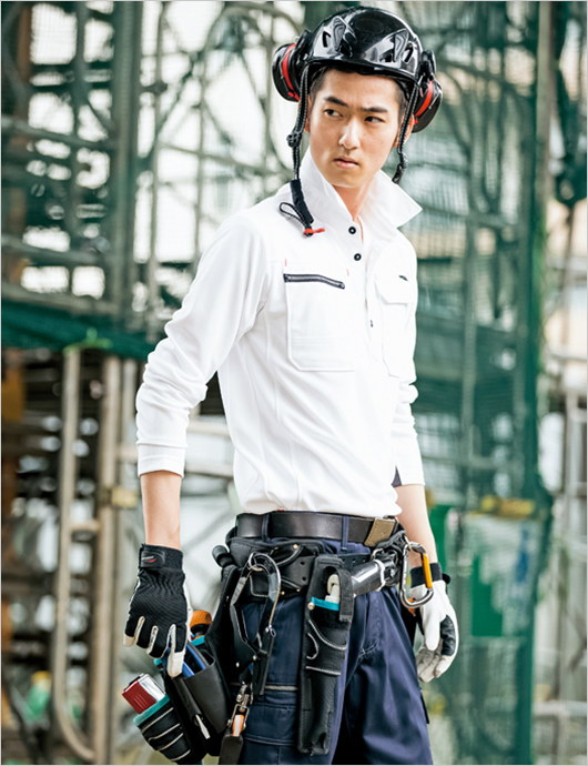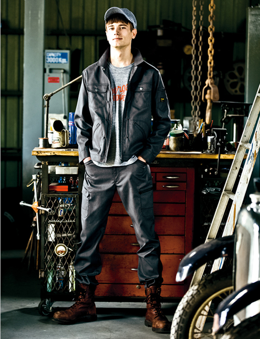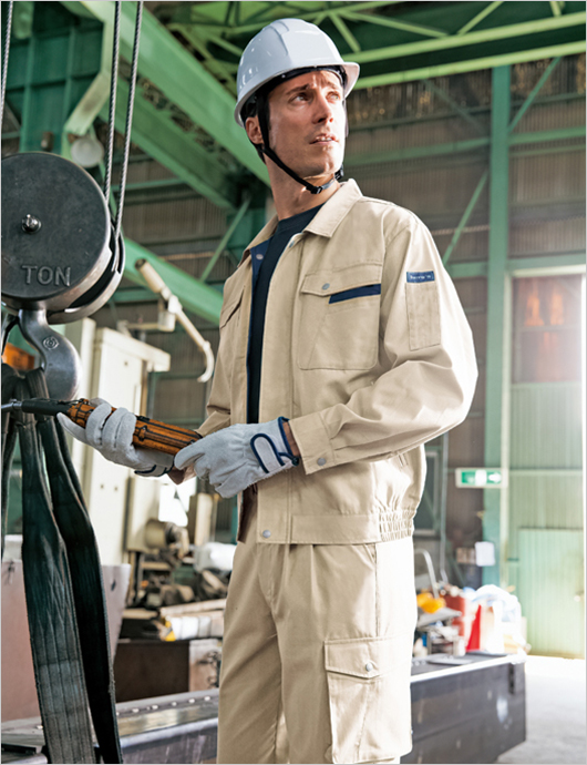 溶接に向いた綿100素材、しわになりにくい裏綿素材、丈夫な綿ポリ素材、防汚加工素材、高視認商品、若い人材を集めるためのかっこいいデザイン